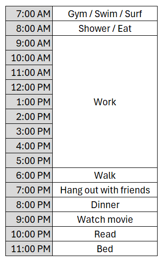 If you had to plan out an ideal daily routine by hour, what would it look like?